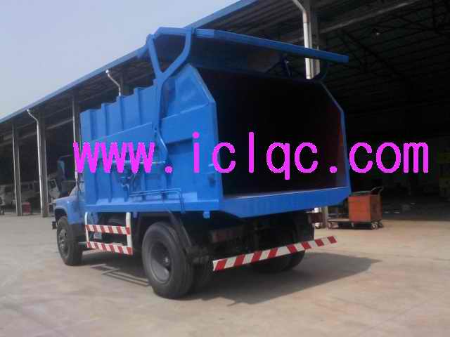 車操作由液壓控制系統(tǒng)來完成,控制方式可以為手動或電氣控。 該車主要用于城鄉(xiāng)垃圾壓縮站的垃圾清運(yùn)。垃圾壓縮站對垃圾進(jìn)行收集、壓縮后將箱體垂直舉起,并打開壓縮箱排泄門,這時(shí)垃圾車箱體后門向上旋轉(zhuǎn)開啟,垃圾車后門與壓縮箱后門對接,之后垃圾塊被壓縮箱內(nèi)的推板水平推進(jìn)到垃圾車箱體內(nèi),完成垃圾裝載后關(guān)閉垃圾車門,將垃圾運(yùn)到垃圾處理地進(jìn)行傾卸。該車由液壓控制系統(tǒng)來完成該車的后門的開啟和關(guān)閉及自卸功能,降低了工人的勞動強(qiáng)度和改善了工作環(huán)境。該垃圾車的收運(yùn)方式是目前國內(nèi)廣泛采用的垃圾壓縮站垃圾轉(zhuǎn)運(yùn)方式,可以實(shí)現(xiàn)一車多站,大大降低了配備成本和空間等等;其專用裝置的功能均以汽車發(fā)動機(jī)為動力, 通過液壓機(jī)構(gòu)手動或電