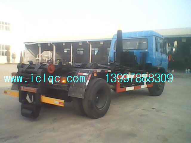 程力專用汽車箱體可卸式垃圾車又稱拉臂式垃圾車(以下簡稱垃圾車)是用于城鎮(zhèn)袋裝、散裝生活垃圾物的收集、運輸、卸料作業(yè)的專用車輛。 該車是由汽車底盤、伸縮拉臂、主臂油缸、活動套臂、套臂油缸、附車架、翻轉(zhuǎn)架、支撐腿、鎖緊架、鎖緊油缸及多路換向閥等組成。翻轉(zhuǎn)架一端連在附車架上,其另一端設(shè)有活動套臂,中間安裝有橫向和縱向鎖緊系統(tǒng);主臂油缸一端連在活動套臂上,另一端連接在附車架上;橫向鎖緊機構(gòu)通過鎖緊油缸的動作可以將垃圾箱體與翻轉(zhuǎn)架上連為一體,再通過伸縮油缸的伸出使活動套臂與翻轉(zhuǎn)架連為一體,最后在主油缸伸出時形成自卸角,從而產(chǎn)生自卸;鉤箱和放箱是橫向鎖緊處于伸出松開狀態(tài),而套臂油缸處于收回狀態(tài),伸縮拉臂回到活動套臂中,縱向鎖緊機構(gòu)脫開,工作拉臂處于最短時進(jìn)行鉤箱與放箱。