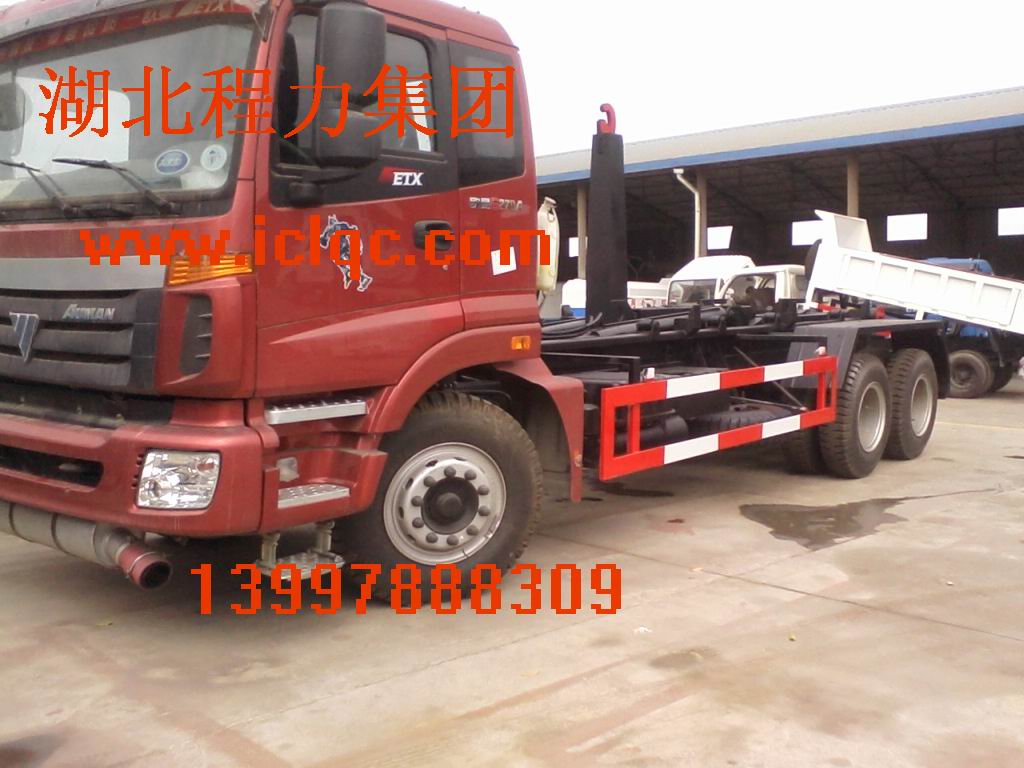 程力專用汽車箱體可卸式垃圾車又稱拉臂式垃圾車(以下簡(jiǎn)稱垃圾車)是用于城鎮(zhèn)袋裝、散裝生活垃圾物的收集運(yùn)輸、卸料作業(yè)的專用車輛。 該車是由汽車底盤、伸縮拉臂、主臂油缸、活動(dòng)套臂、套臂油缸、附車架、翻轉(zhuǎn)架支撐腿、鎖緊架、鎖緊油缸及多路換向閥等組成。翻轉(zhuǎn)架一端連在附車架上,其另一端設(shè)有活動(dòng)套臂,中間安裝有橫向和縱向鎖緊系統(tǒng);主臂油缸一端連在活動(dòng)套臂上,另一端連接在附車架上;橫向鎖緊機(jī)構(gòu)通過(guò)鎖緊油缸的動(dòng)作可以將垃圾箱體與翻轉(zhuǎn)架上連為一體,再通過(guò)伸縮油缸的伸出使活動(dòng)套臂與翻轉(zhuǎn)架連為一體,最后在主油缸伸出時(shí)形成自卸角,從而產(chǎn)生自卸;鉤箱和放箱是橫向鎖緊處于伸出松開狀態(tài),而套臂油缸處于收回狀態(tài),伸縮拉臂回到活動(dòng)套臂中,縱向鎖緊機(jī)構(gòu)脫開,工作拉臂處于最短時(shí)進(jìn)行鉤箱與放箱。 該車可將地下垃圾箱內(nèi)的垃圾及垃圾箱一同拉至車上運(yùn)走同時(shí)可自卸,且垃圾箱體采用液壓鎖緊或開啟,降低了工人的勞動(dòng)強(qiáng)度和改善了工作環(huán)境。該垃圾車的收運(yùn)方式是目前世界上廣泛采用的垃圾收運(yùn)方式,可以實(shí)現(xiàn)一車多箱,大大降低了配備成本和空間等等;