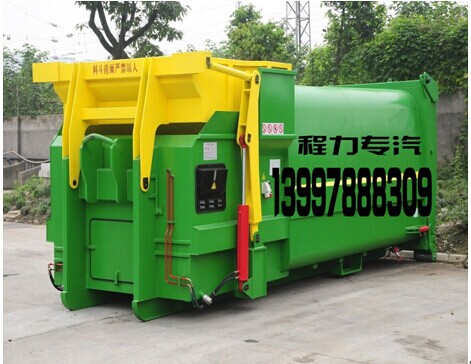 程力移動(dòng)壓縮式垃圾箱,是一種集垃圾自動(dòng)收集、壓縮和垃圾暫時(shí)存儲(chǔ)為一體的垃圾收集箱。它由箱體總成和控制系統(tǒng)兩大部分組成,移動(dòng)壓縮式垃圾箱通過(guò)控制系統(tǒng)來(lái)控制填塞器進(jìn)行垃圾的壓縮。由17t拉臂車運(yùn)輸,能與之匹配;在垃圾處理場(chǎng)與17t拉臂車配合使用,實(shí)現(xiàn)垃圾自卸,保證垃圾卸料順暢并確保在傾卸后,箱體內(nèi)和后門(mén)無(wú)殘留垃圾。由于車與箱可分離單獨(dú)使用,一車可配多箱,最大限度地提高運(yùn)輸車輛的使用率,減少車輛的配置量,提高運(yùn)輸效率,降低運(yùn)行費(fèi)用。