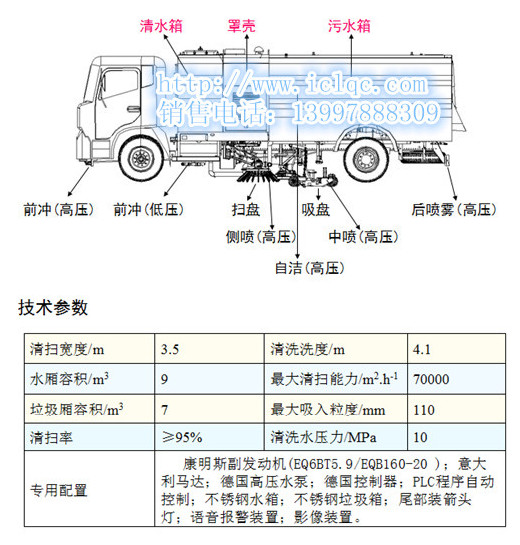 7、采用先掃,后沖刷,再吸收的工作方式,能將垃圾及污水一次清掃、沖刷、吸收干凈。路面作業(yè)后無(wú)塵土,無(wú)積水。