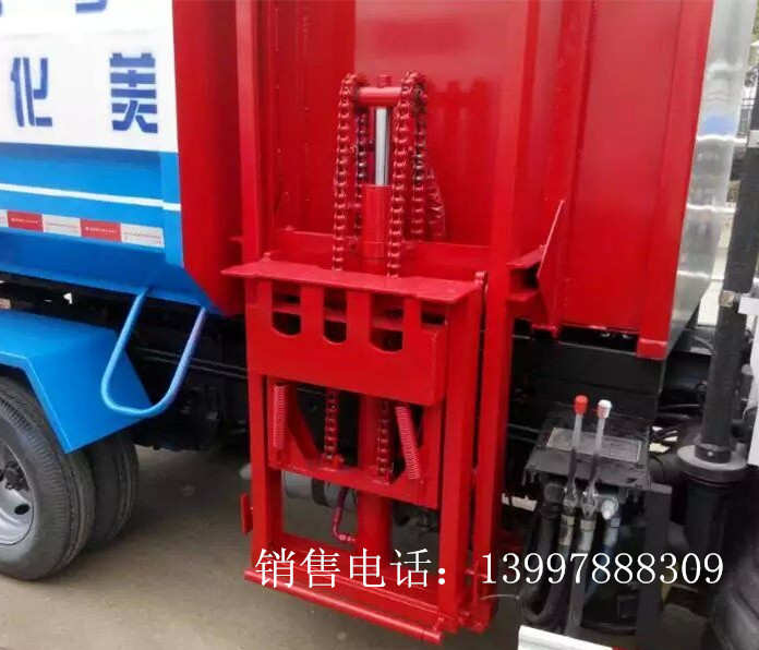 福田小型側(cè)裝掛桶式垃圾車采用鏈條和液壓油缸聯(lián)動裝置,實(shí)現(xiàn)對垃圾斗提升和翻轉(zhuǎn),福田小型自裝卸式垃圾車又稱掛桶垃圾車,箱體可采用:碳鋼、不銹鋼、內(nèi)部采取環(huán)氧樹脂反腐處理。