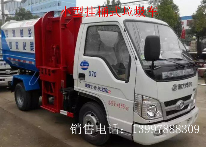 3、小型掛桶式垃圾車,該車的主要亮點(diǎn)在于一個(gè)車能配幾十個(gè)垃圾桶,能實(shí)現(xiàn)一臺(tái)車與多個(gè)垃圾桶聯(lián)合作業(yè),循環(huán)運(yùn)輸,充分提高車輛的運(yùn)輸能力。平時(shí)里可把垃圾桶放置在各個(gè)垃圾收集點(diǎn),待垃圾桶裝滿后,該車通過垃圾液壓提升機(jī)構(gòu),把垃圾桶的垃圾自行倒入垃圾廂內(nèi),運(yùn)到垃圾站后通過液壓來后卸。