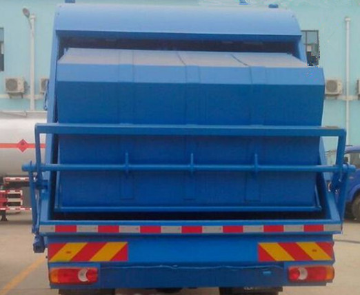 廂體材料為優(yōu)質(zhì)炭鋼,厚度為5mm,容積為8-10立方米,由裝料機(jī)構(gòu)、壓縮機(jī)構(gòu)、卸料機(jī)構(gòu)、油泵、油箱、控制閥等組成的液壓機(jī)構(gòu)組成。裝料機(jī)構(gòu)由支架、連桿機(jī)構(gòu)、凸輪、掛鉤等組成,在油缸作用下,將垃圾桶內(nèi)的垃圾自動(dòng)翻轉(zhuǎn)倒入料斗內(nèi)。