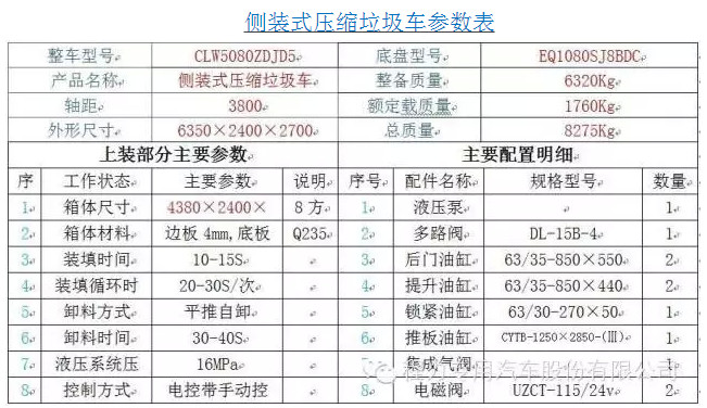 為適應(yīng)市場(chǎng)需要,公司技術(shù)部特配合壓縮垃圾車廠生產(chǎn)研發(fā)出3800軸距側(cè)裝式壓縮,此車型外型美觀,裝載量大,實(shí)載垃圾8方,圓弧形骨架式推頭,配合后門雙液壓鎖緊,使車輛的壓縮效果大大增加.
