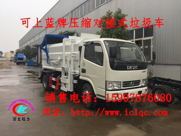 上藍(lán)牌的壓縮式對(duì)接垃圾車(chē): 是一款垃圾車(chē)中熱銷(xiāo)產(chǎn)品,免交購(gòu)置附加稅,高配置、低價(jià)格,經(jīng)濟(jì)實(shí)惠,美觀大方,駕駛舒適,在享受中工作賺錢(qián)!采用東風(fēng)原裝底盤(pán)(全國(guó)聯(lián)保),具有整體結(jié)構(gòu)設(shè)計(jì)合理緊湊,使用效率高,廂體采用輕量化設(shè)計(jì)、運(yùn)載量大、封閉性能好;是一種安全、節(jié)能、環(huán)保、高效的新型壓縮式結(jié)構(gòu)環(huán)衛(wèi)專(zhuān)用車(chē)。整車(chē)長(zhǎng)不超過(guò)6米,常用發(fā)動(dòng)機(jī)包括全柴、朝柴,7.00-16尼龍輪胎 ,斷氣剎。容積一般為4立方,根據(jù)客戶需求和各個(gè)地方上戶要求不同,容積各不相同。湖北程力公司為你提供更多垃圾車(chē)型號(hào)、垃圾車(chē)圖片、垃圾車(chē)配件、最優(yōu)的垃圾車(chē)價(jià)格。請(qǐng)撥打全國(guó)咨詢熱線:0722-3336336 13997888309 15997876080 網(wǎng)址:http://www.iiq8.cn