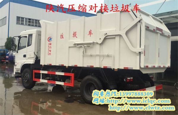 二、陜汽軒德對接式壓縮垃圾車,整車型號為CLW5160ZDJS5,底盤型號SX1168GP5,總質(zhì)量15.8噸,額定質(zhì)量7.1噸,整備質(zhì)量8.5噸,4600mm軸距,玉柴160馬力國五柴油發(fā)動(dòng)機(jī),外形尺寸為7920*2500*3300mm,箱體容積在8立方左右。該款對接式壓縮垃圾車全自動(dòng)操作,其壓縮密度可達(dá)0.8T/m3。