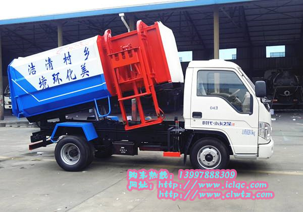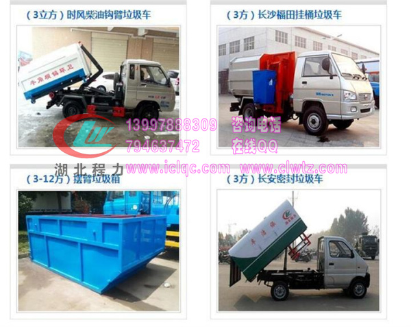6、掛桶式垃圾車(chē):掛桶垃圾車(chē)組成:由底盤(pán)、廂體總成、自動(dòng)提升裝料裝置、液壓系統(tǒng)、操作系統(tǒng)等組成。又叫自裝卸式垃圾車(chē),這種垃圾車(chē)通常和街道邊的垃圾桶配套使用,其最大的特點(diǎn)是可自動(dòng)將垃圾桶抓取、提升、傾倒、放下。整個(gè)作駕駛員完全在駕駛室內(nèi)作完成,效率高,通常用于街道兩側(cè)的垃圾桶內(nèi)垃圾的收集運(yùn)用。