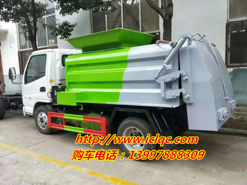 上裝配置:罐體采用優(yōu)質(zhì)鋼材制作,方形罐體,后蓋可利用液壓油缸打開卸料;罐體右側(cè)前部裝有掛桶提升機(jī)構(gòu),罐體底部安裝液壓油缸實現(xiàn)罐體舉升自卸。后蓋采用液壓開啟、鎖緊。操作方式為室外手動液壓操作。可加裝干濕分離裝置和加熱管。