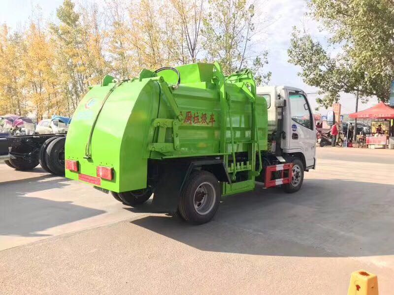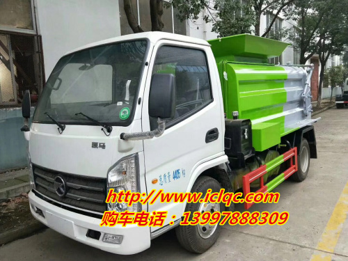 上裝配置:罐體采用4mm優(yōu)質(zhì)鋼材制作,方形罐體,罐體與后蓋上部采用鉸鏈連接,后蓋可利用液壓油缸打開卸料;罐體右側(cè)前部裝有掛桶提升機(jī)構(gòu)裝卸桶裝垃圾,罐體底部安裝液壓油缸實(shí)現(xiàn)罐體舉升自卸。后蓋采用液壓開啟、鎖緊。操作方式為室外手動(dòng)液壓操作.