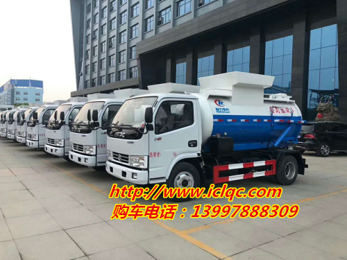 新款東風(fēng)5方餐廚垃圾車:上裝由箱體、后門機(jī)構(gòu)、密封鎖緊機(jī)構(gòu)、推板機(jī)構(gòu)、掛桶機(jī)構(gòu)及操作機(jī)構(gòu)組成。底盤配置: 5方東風(fēng)餐廚垃圾車采用朝柴102馬力/全柴115馬力發(fā)動機(jī),1730單排駕駛室,7.00R16鋼絲胎,氣剎、ABS、五檔變速箱,成排的餐廚垃圾車整裝待發(fā)。